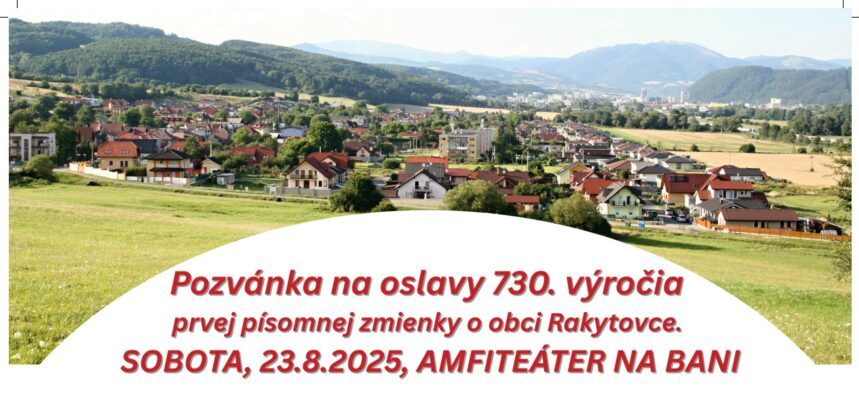 Pozvánka na oslavy 730. výročia prvej písomnej zmienky o obci Rakytovce